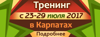 Дорогие друзья, вот и лето на подходе и настала пора готовиться к нашей традиционной встрече-тренингу в Карпатах! Который состоится с 23 по 29 июля 2017 года.23- заезд